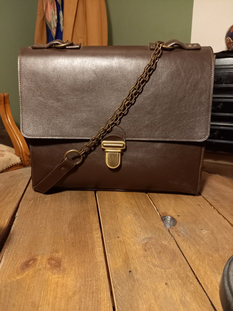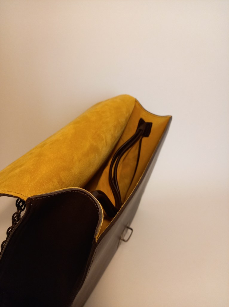 I have been brooding on this one for a while. Saw the chain/leather/chain strap just walking around and got a bit obsessed with it. I NEED to make one myself. for some reason I envisioned the 60’s school uniform. the dark shoes, white socks, dark skirt and fully buttoned shirt. This came out. I honestly really like the bag because it’s very close with how I saw it in my head. But I fucked up horrible with my finals stitches. Tried fixing it, screwing this up even more. Shame really. Degraded to test model.