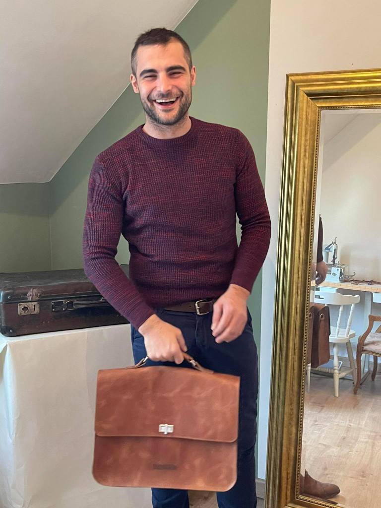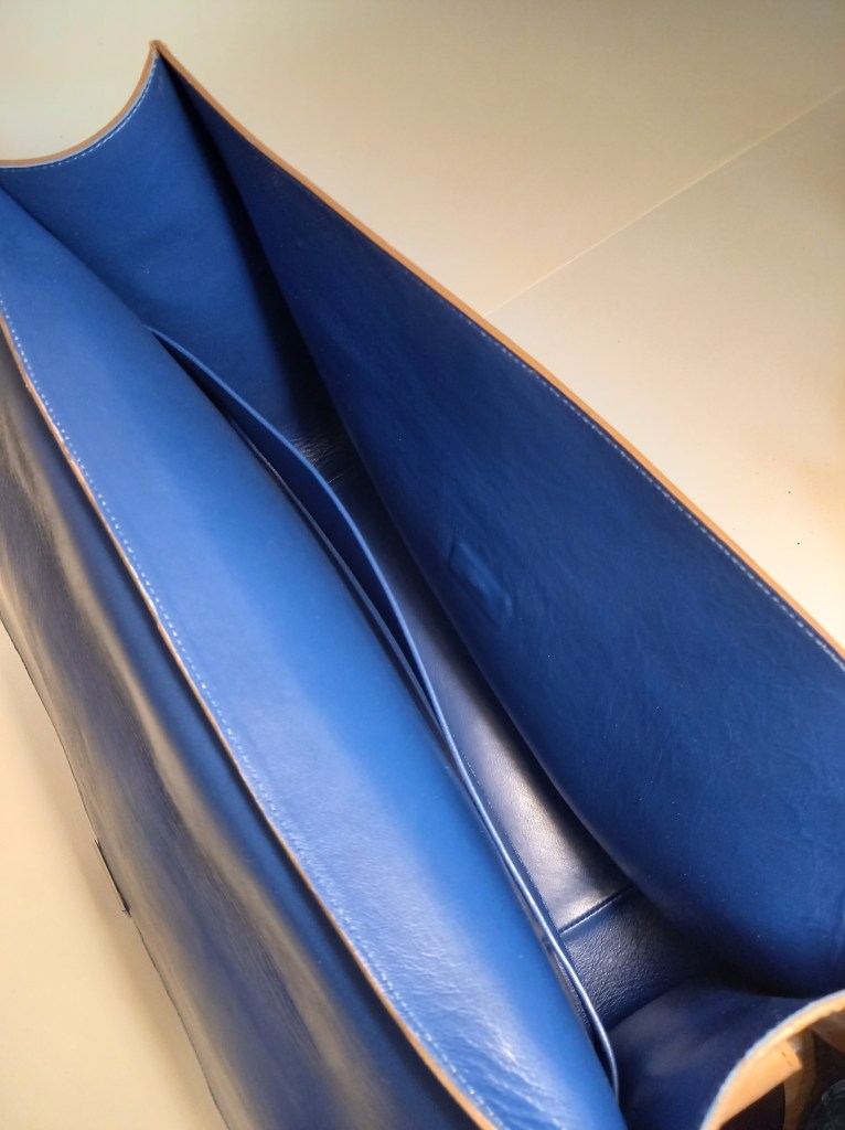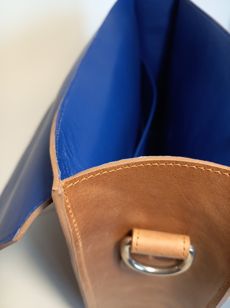 Honestly, everything that could go wrong, went wrong. Had to redo the complete flap, didn’t have enough leather for the planned strap. Made two mistakes in my stitching which left tiny marks. Still decided to make him available for sale though, because overall it exceeded my expectations. If I could find the smallest reason to use it myself I would, But it would just collect dust which is a shame. No more need to picture everyone in the room naked to get over that stage freight, just carry this one. Confidence +1.
