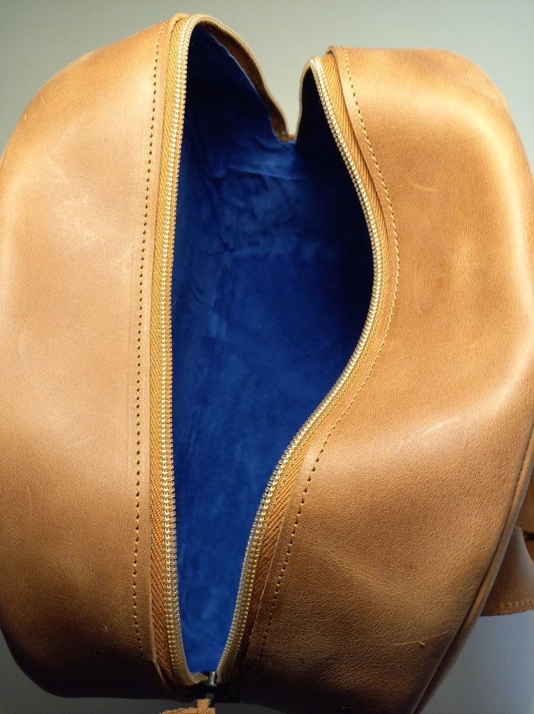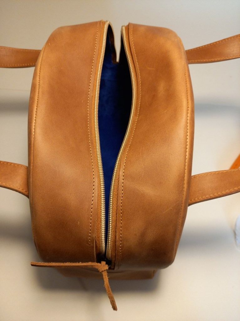 I hate driving with my wallet in my back pocket, smartphone and keys in the front. So I always put it on the seat next to me. Which when I needed to break a bit harder than usual, fell on the ground. An annoyance for years. I did a The Big Lebowski rewatch for the nth time on a boring night and it hit me, The bowling bag is just perfect. the base is width enough so it doesn’t fall over and gravity point low enough so it doesn’t slide so easy. Fits perfectly on the top shelf of my locker at work as well. That was the test model, which I claimed. This is the second one and what a functional beauty. This leather is a bit more sturdy but can take small scratches meaning it will get better with time.