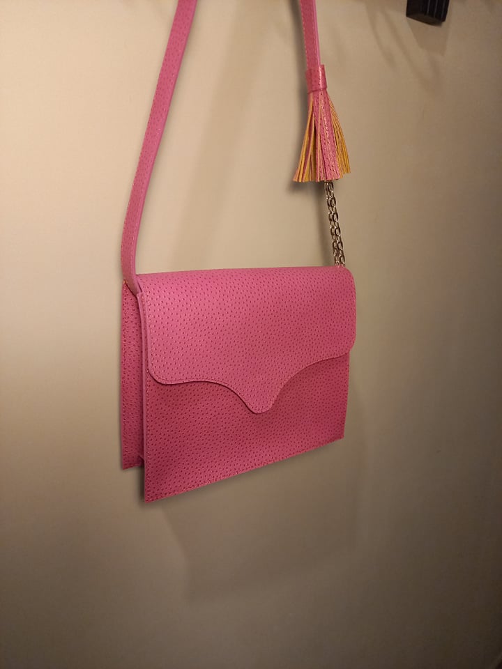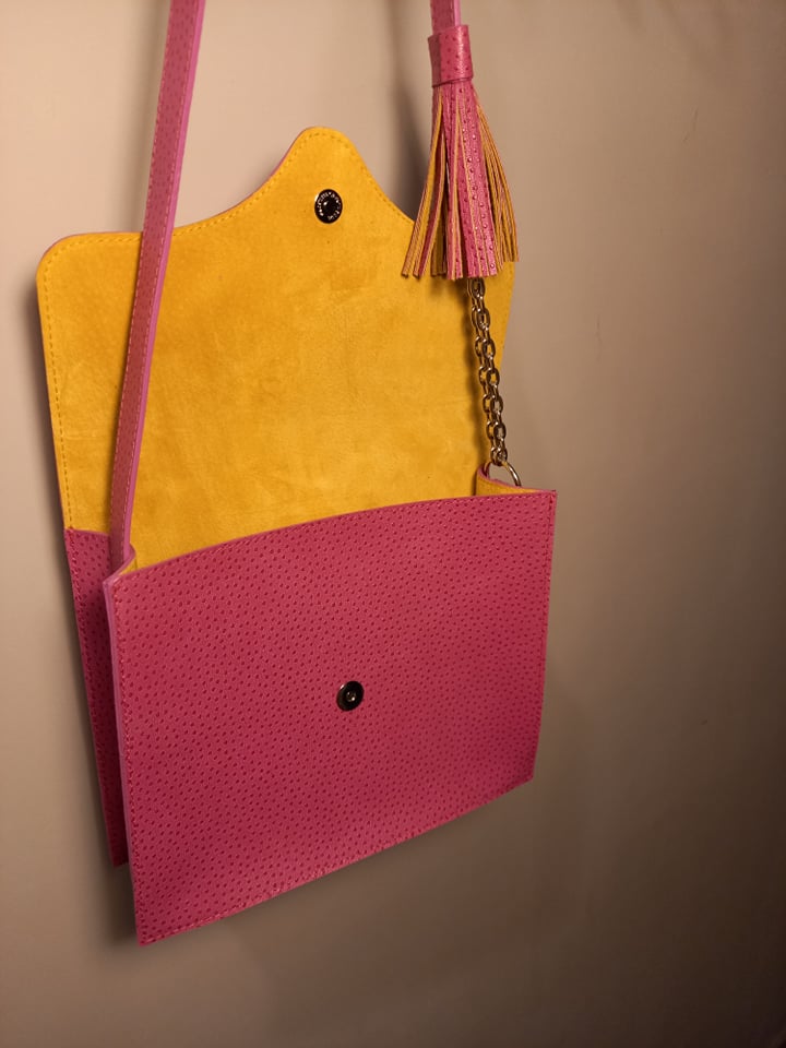#017 Domino Shoulder bag Space Violet Leather outside Yellow Suede Leather inside H: 20cm W: 6cm L: 23cm My niece wanted a pink handbag. #016 #018