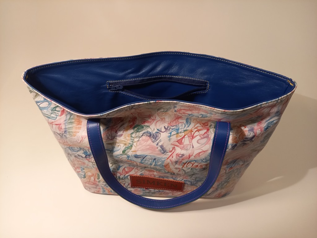 #026 Boardwalk Shopper Tote bag Main body Multicolor White Leather outside Cobalt Blue Nappa Leather inside H: 29cm W: 11cm L: 36cm 2 inside pockets 260 euro Colorful. Cheerful. Summer. #025 BUY #027