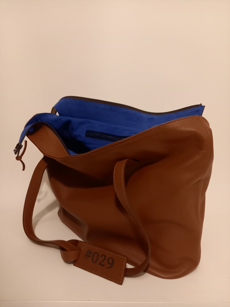 #029 Boardwalk Shopper Tote bag Cuero Brown Leather outside Cobalt Blue Nappa Leather inside H: 29cm W: 11cm L: 36cm Sold. #028 #030