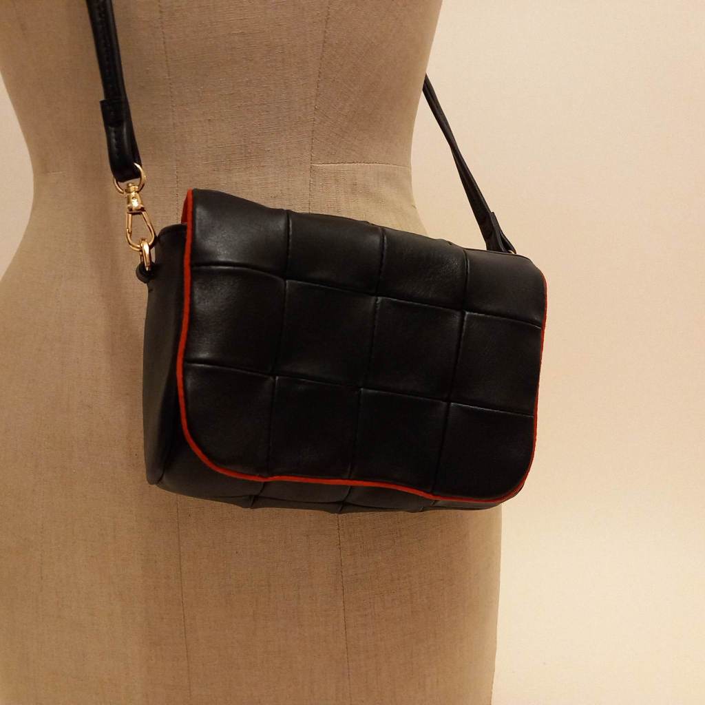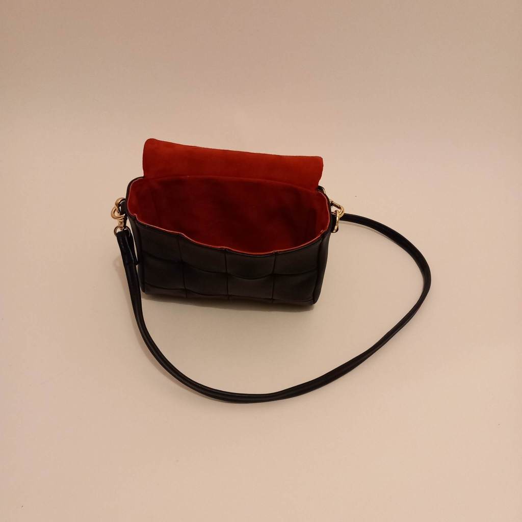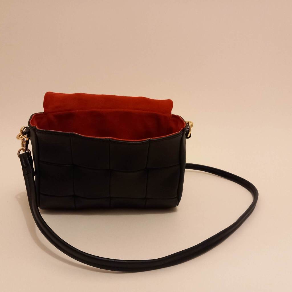 If you have all these squares the possibilities look endless. But then you stitch them together and you see it’s only a small surface. Didn’t know what to do with it for a week, so I just decided to keep it simple so I could move on from this pixel thing. It’s been fun but very time consuming and limiting. Want to give that Cylinder model another try now because I’ve been testing out #035. It handles amazing as a bag for work. I still have around 100 squares left but I want a clear idea of what model first, before I start sewing like a maniac again.
