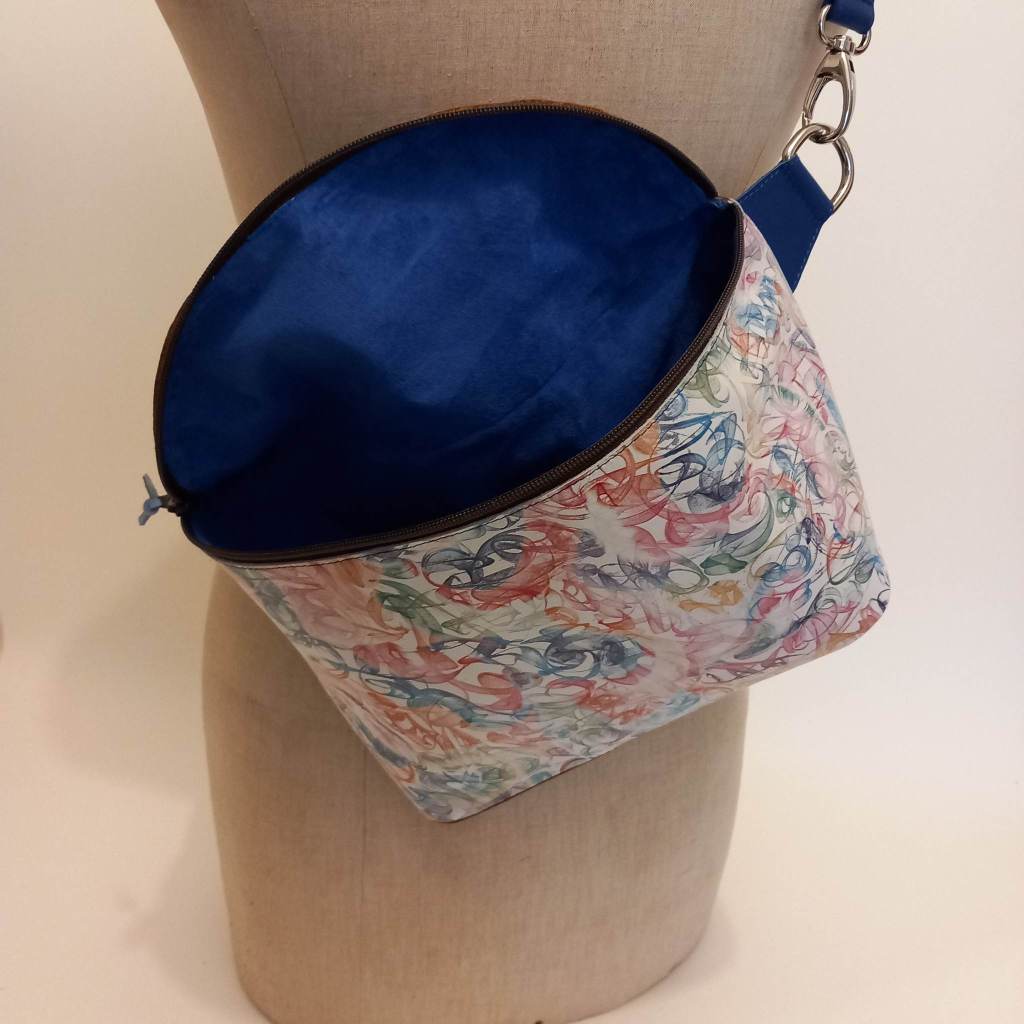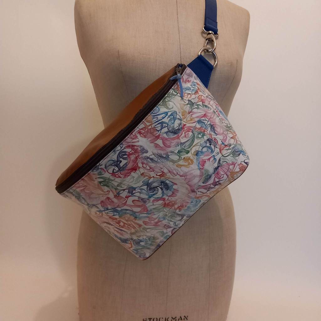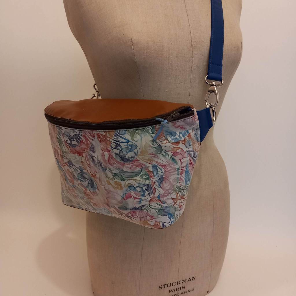 Fanny pack XL. Could be a hip bag or backpack too. I’ve added a separate pocket with a zipper. Big enough for a smartphone, with the zipper on the backside for added safety. Overall extremely happy with the end result. The color combination keeps coming back because its just one of my favorites at the moment. Although it will need the right fashionista to make it work. I believe they exist. Dozens of them! Itching to make the next one. But what colorrrrrr..hmm