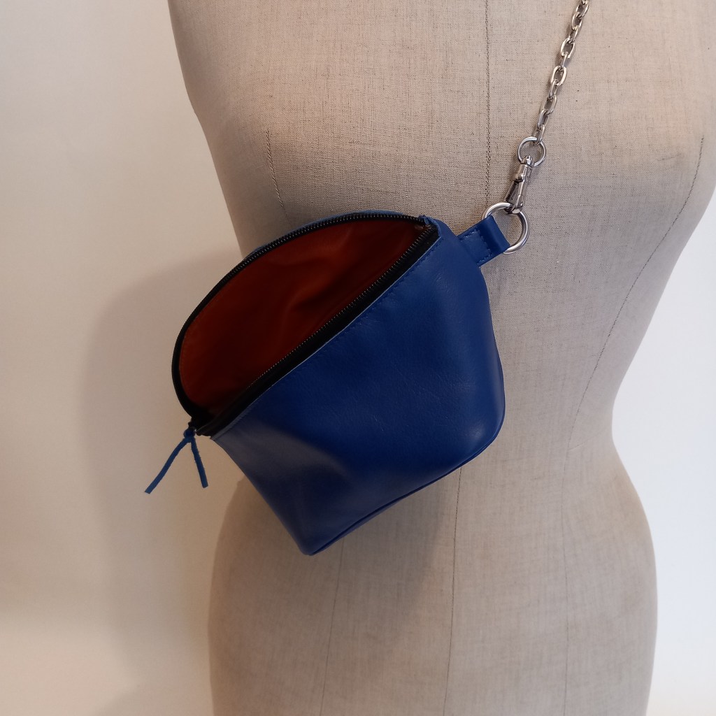 This piece of leather was a leftover from before I started numbering. With this bag it’s finished up. Originally I wanted to use up my blue lamb leather, but just didn’t have enough. And it was a bit too much blue. Prefer the contrast with the orange more. On to the next.
