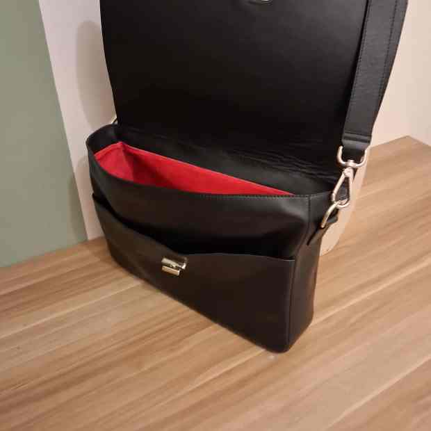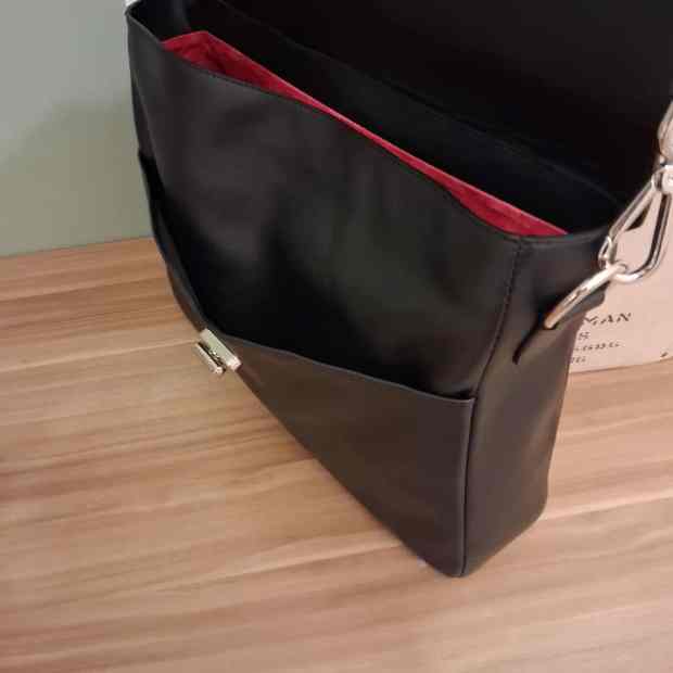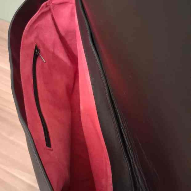 This one is the perfect example of my love/hate relationship with black. There is always a better color than black. But nothing shows design flaws like black. I hate how the sides don’t fill out when its empty. It is a non-issue when in use, but it is unacceptable for me. I think the solution comes in the form of thicker and a more sturdy leather like the skimo. Added a handle this time, just because I felt like it and nobody is stopping me.